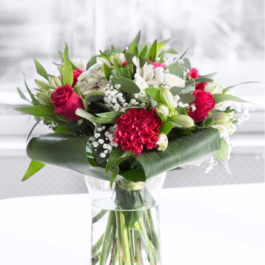 The bouquet exceeded my expectations. Such a charming display of red and white flowers.
